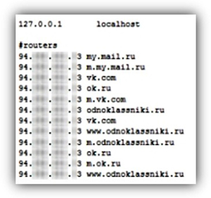 В файле hosts, модифицированном программой Win32/Bicololo, были обнаружены ссылки на сайты «Одноклассники» и «ВКонтакте», а также на портал Mail.ru — то есть угроза нацелена на пользователей именно этих ресурсов.