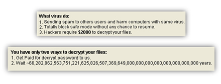Авторы настоящей вредоносной программы предлагают два способа избавиться от «вируса»: подождать 66 с небольшим нониллионов (1054) лет или же заплатить «специалистам». За «чрезвычайно тяжелую работу по детектированию вируса» от пользователя могут потребовать заплатить в среднем 100-200 евро (или схожую сумму в рублях), но некоторые модификации могут запрашивать до 3 тыс. евро.