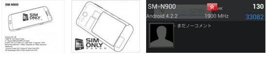 Если верить Sim Only Radar, новый смартфон будет поставляться с двумя видами чипов, по аналогии с Samsung GALAXY S4. Первым станет восьмиядерный Exynos 5 Octa с тактовой частотой 1,9 ГГц (4 ядра Cortex A15 и 4 ядра Cortex A7), а вторым — Qualcomm Snapdragon 800 с тактовой частотой 2,3 ГГц. Интересно, что одновременно с этой информацией в сети появился скриншот прохождения синтетического теста AnTuTu смартфоном SM-N900, который подтвердил частоту процессора 1,9 ГГц (Exynos) и показал, что девайс будет мощнее, чем GALAXY S4 (у того результат ниже 30 000).