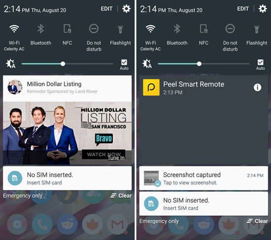 Рекламные баннеры распространяет служба Samsung Push Service, генерирующая уведомления от различных приложений, включая Samsung Pay и Samsung Link. За короткое время пользователи корейский аппаратов получили предложение от Samsung приобрести флагманский телефон Galaxy S6 Edge+, а также получили промо-анонсы телевизионных передач, спонсором которых выступила Land Rover. Причем при нажатии на последний рекламный баннер смартфон запускает приложение Peel, позволяющее установить напоминание о необходимости ее просмотра.