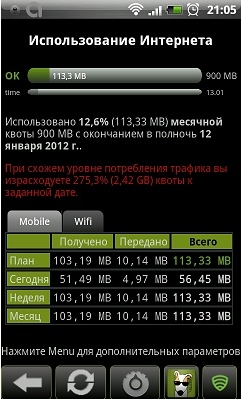Программа довольно хорошо проработата, к примеру, если у вас посуточный объем пакетного трафика, тогда после исчерпания 99% объема 3G Watchdog автоматом отключит Интернет, и подключит его завтра. А чтобы вся статистика была перед глазами (количество использованного трафика, а оставшийся процент выделенной квоты), есть красивый виджет рабочего экрана. В целом, программа делает все, чтобы не допустить даже минимального перерасхода трафика. Например, заранее предупреждает пользователя о скором окончании его лимитов при помощи вибрации.
