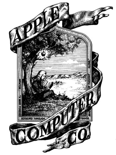 Первая версия логотипа Apple, нарисованная Роном Уэйном. Он пытался включить в рисунок собственную подпись, но Стив Джобс заставил убрать её.