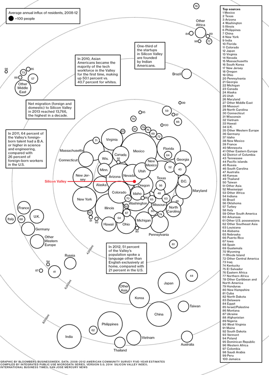 График составлен на основании результатов исследования американского коммьюнити с 2008 по 2012 год. Карта дополнена данными микроисследования по Кремниевой долине за 2014 год.