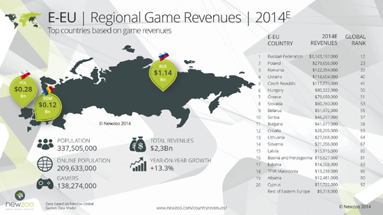Украинцы в 2014 году потратили на игры $118,6 млн, и наша страна оказалась на 40 позиции. В своем регионе (Eastern Europe) Украина занимает 4 место после России, Польши и Румынии.
