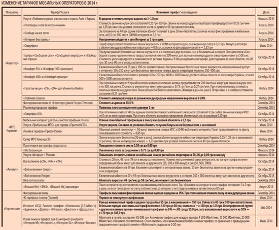 Впрочем, глава департамента по телекоммуникациям аналитической компании GFK Ukraine Надежда Тарасенко считает, что мобильным операторам все таки придется пересматривать тарифы. Это, по ее словам, связано не только с девальвацией и инфляцией, но и увеличение платы за радиочастоты в этом году в 2 раза. «После финансового кризиса в 2012 году в Беларуси в среднем рост цен на отдельные услуги мобильной связи составил от 30 % до 80 %.Также не стоит забывать про 3G-тендер. Помимо стоимости самой лицензии, игроков ожидают существенные инвестиции в сеть», — говорит она.