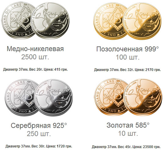 Тираж монет ограничен (всего 2860 экземпляров), поэтому организаторы не сомневаются, что серия будет быстро раскуплена, невзирая на освежающе высокую цену — от 50 до 3000 долларов. Авторы проекта говорят, что при создании этой серии монет вдохновились личностью Стива Джобса, его силой и творческой энергией. Кстати, это еще не последняя мемориальная акция украинцев. Как уверяют создатели iCoin, 10 % доходов от продаж монет пойдут на установку памятника Джобсу в Киеве.
