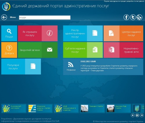 В Министерстве экономического развития и торговли Украины объяснили сходство дизайна недавно запущенного Единого государственного портала административных услуг (ЕГПАУ, poslugy.gov.ua) с дизайном операционной системы Microsoft Windows 8.