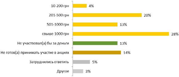 Сумму компенсации за участие в акциях в размере не более 200 грн назвало только 4% опрошенных.