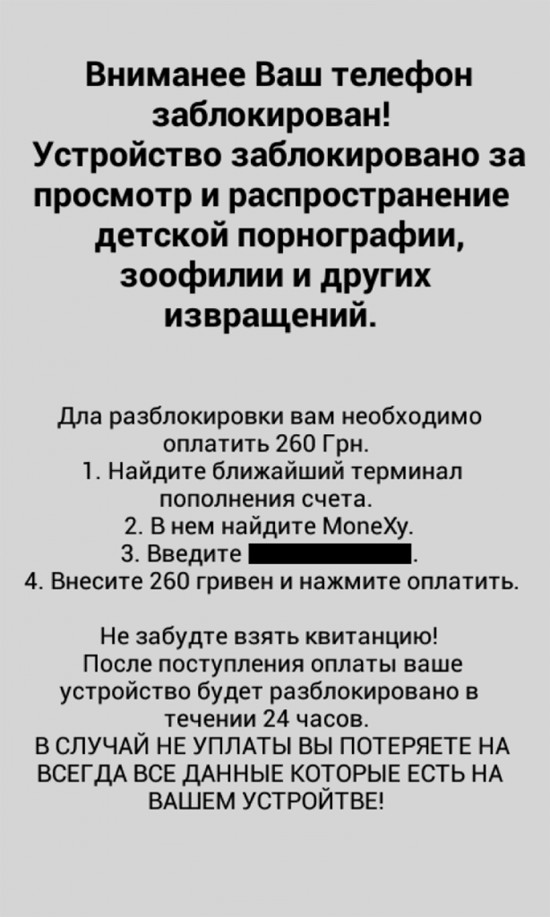 Для гаджетов на платформе Google появился новый зловред, и его первыми жертвами стали наши соотечественники. Троян под названием Simplocker фактически «угоняет» гаджет, как это случилось с владельцами iPhone. Он стал одним из первых вирусов-вымогателей для платформы Android и требует по 260 грн.