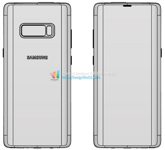 Ультрабезрамочный Samsung Galaxy Note 8 на рендере с двух сторон