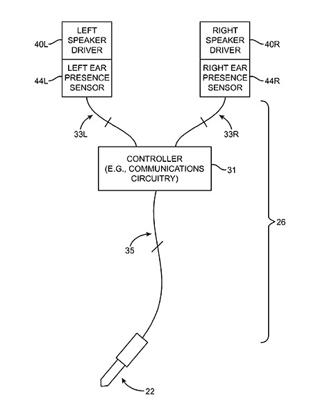 В патенте Apple приводит ситуации, когда пользователь iOS-устройства вынимает из ушей оба наушника – в этот моменты плеер ставит музыку на паузу; если же человек надевает наушники – воспроизведение продолжается. Это позволит сэкономить заряд аккумулятора и мобильный трафик при прослушивании онлайн-радио.