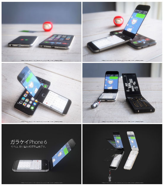 «В Японии эти огромные «раскладушки» называют «garakei» и они там очень популярны, несмотря на большую рыночную долю iPhone в Стране восходящего солнца. Что если Apple решит выпустить iPhone специально для японского рынка? Встречайте — garakeiPhone!».