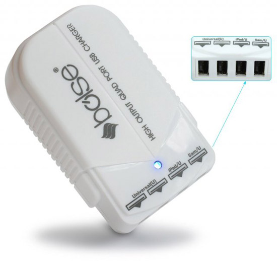 Этот гаджет подключается к розетке переменного тока и обеспечивает быструю зарядку для для iPhone, iPad, и Android смартфонов Samsung. В наличии 4 порта. Цена на amazon $ 25.