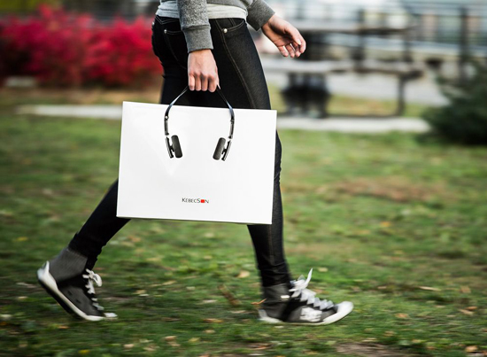Компании из музыкальной отрасли любят создавать необычные упаковки для своих продуктов, и KébecSon не исключение. На пакете изображены сами наушники, а ручки символизируют дужку. Превосходная идея.