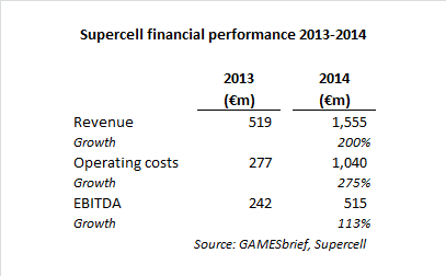 Компания Supercell, которая является одной из самых крупных организаций, занимающихся изданием мобильных игр, в 2014 году получила доход на общую сумму 1,55 миллиарда евро. При этом чистая прибыль от игр составила 519 миллионов евро. Такая выручка стала реальностью благодаря таким играм, как Hay Day, Clash of Clans и Boom Beach. По сравнению с 2013 годом доходы у Supercell увеличились втрое, но выросла и затратная часть. Операционные расходы увеличились более чем в 3,5 раза и составили 1,04 миллиарда евро. Только на продвижение своих продуктов Supercell потратила около 400 миллионов долларов.