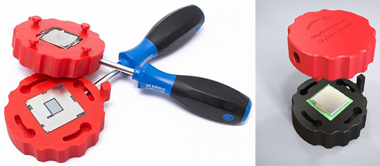 Неудивительно, что «скальпирование» Skylake становится всё более и более популярным. В Японии даже появилось устройство под названием Skylake Twister, облегчающее процесс отделения крышки теплораспределителя от ядра. Достаточно вложить процессор в специальное углубление, закрыть крышку и воспользоваться отвёрткой. Но вовсе не обязательно заказывать Skylake Twister из Японии: немецкий сайт компании Aqua Computer, выпускающей компоненты СЖО, выложил 3D-модель устройства в формате STL в открытый доступ.