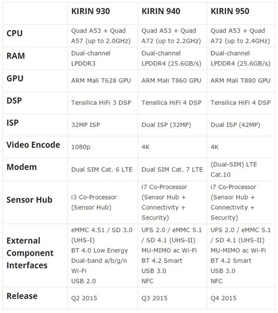 Первый из них, Kirin 940, может появиться в смартфонах Huawei конца летнего сезона. В основе его система big.LITTLE из четырех ядер Cortex-A53 и стольких же Cortex-A72. Последние отвечают за исполнение требующих высокой производительности задач, частота их сможет достигать 2,2 ГГц.