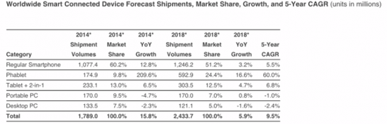 Так, по прогнозам, к концу года будет продано 175 миллионов планшетофонов, что превысит продажи ПК (ожидается, что в 2014 году люди приобретут 170 миллионов компьютеров).