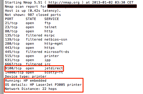 Хакер Себастьян Гуерреро (Sebastián Guerrero) из компании ViaForensics подробно описал в своём блоге (исп. яз.) уязвимости в технологии JetDirect, которая используется большинством производителей сетевых принтеров для подключения принтера к локальной сети.