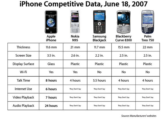 По сравнению с телефонами, имеющимися на 2007 год, модель с 3,5-дюймовым экраном считалась действительно большой. Кроме того, довольно необычным явлением было практически полное отсутствие физических кнопок.
