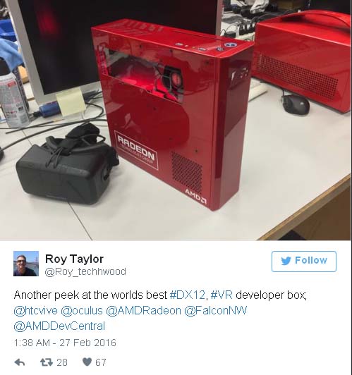 ПК обещают снабдить комплектующими с поддержкой DirectX 12, которые удовлетворяют всем требованиям очков виртуальной реальности. Представители компании опубликовали изображение системного блока, чтобы подтвердить серьезность своих намерений.