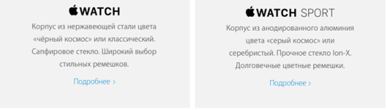 Как указано на сайте самой Apple, Watch Sport оснащается прочным стеклом «Ion-X», в отличие от Watch и Watch Edition, в которых используется сапфировое стекло.