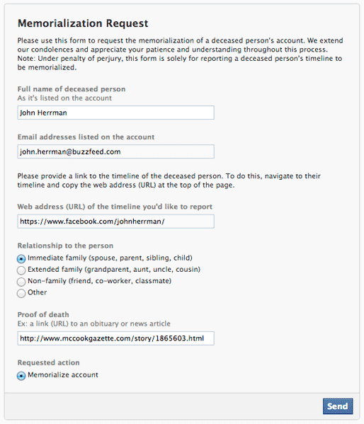 Издание BuzzFeed недавно проверило этот метод, «умертвив» в Facebook Джона Хермана (John Herrman), родственника редактора — сработало без проблем.