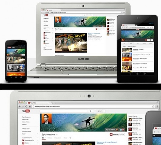 Многие критиковали Samsung за то, что их новый ноутбук Chromebook оказался подозрительно похож на MacBook Air. Ошибка дизайнера, создавшего рекламу YouTube для сайта Google дает повод в очередной раз припомнить корейской компании заимствование дизайна «воздушных» ноутбуков. Если присмотеться, видно, что Chromebook работает под управлением OS X, а вовсе не Chrome OS, как ему положено. Ладно хоть браузер на картинке — все–таки Chrome, а не Safari.