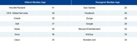 Выполненное недавно располагающейся в Сиэтле компанией PayScale исследование подтвердило то, о чём и так все догадывались: согласно полученным данным, в IT-индустрии работают главным образом молодые мужчины. В опросе были задействованы 32 компании, в которых был произведён подсчёт медианного возраста сотрудников. Всего в шести из них он оказался больше 35 лет, в то время как во всей экономике США медианный возраст сотрудников, по данным Бюро статистики труда, составляет 42,3 года.