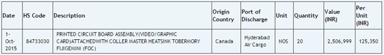 База данных Zauba.com служит неиссякаемым источников фактов, слухов и допущений для всего мира компьютерной журналистики. Этот индийский ресурс отслеживает операции импорта и экспорта, поэтому в нём нередко встречаются весьма любопытные сведения о ещё не анонсированных продуктах. На этот раз на глаза обозревателям попалась некая графическая карта под названием «Fiji Gemini», а точнее, целая партия таких карт, отправленная из штаб-квартиры AMD в Канаде.