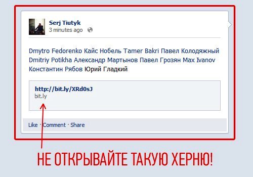 Новый вирус на фейсбуке множиться молниеносно. 8 человек за 20 минут. Друзья, не реагируйте, когда вас отмечают на ссылке через bit.ly!!!