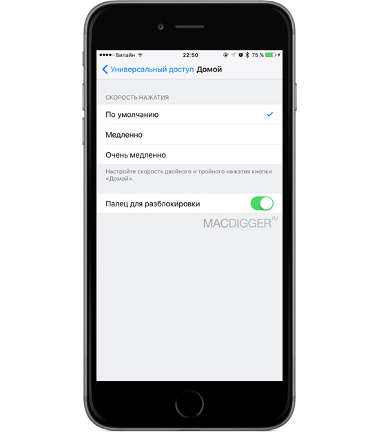 Apple решила проблему в iOS 10 путем дополнительного клика. Если по каким-то причинам, пользователи решат вернуть разблокировку «по-старому», в новой бете можно воспользоваться функцией «Палец для разблокировки». В английской версии интерфейса ее название звучит более понятно – Rest Finger To Unlock (оставить палец для разблокировки). Опцию можно найти в разделе Настройки –> Основные –> Универсальный доступ –> Домой.