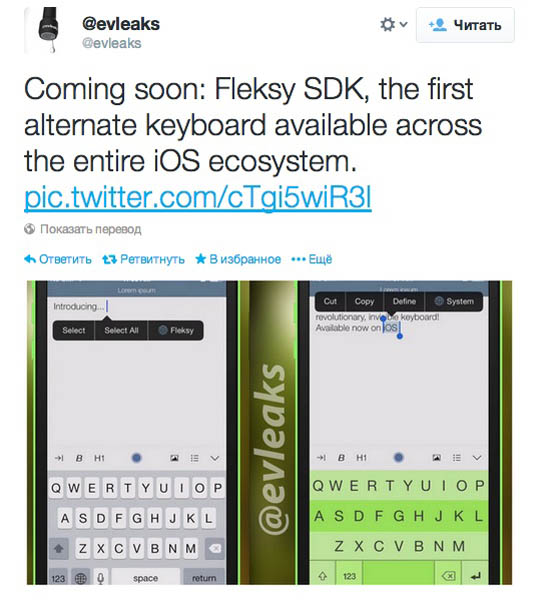 В твите написано, что этот набор инструментов будет доступен во всей экосистеме iOS. Это означает, что разработчик приложения, в котором необходимо вводить текст, сможет по желанию отказаться от стандартной клавиатуры системы, а сделать выбор в пользу Fleksy.