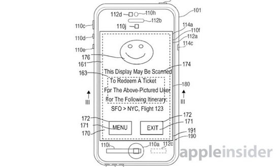 В патенте Apple рассказывает про маленький девайс по типу iPhone, который оснащен двумя дисплеями. Верхний работает, как обычный дисплей и легко распознаваем человеком, а нижний передает информацию считывающим девайсам.
