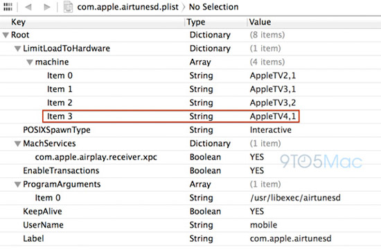 Как сообщает 9to5Mac, в операционной системе iOS 7 были найдены ссылки на новую модель, имеющую идентификатор «AppleTV 4,1». Это подтверждает слухи о том, что в Купертино ведется работа над Apple TV четвертого поколения. Предыдущие версии девайса имели обозначения «AppleTV 2,1», «AppleTV 3,1» и «AppleTV 3,2».