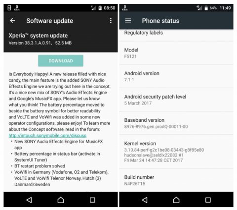 В начале января компания Sony в рамках программы Concept for Android выпустила тестовую прошивку Android 7.1.1 Nougat для смартфона Xperia X. С тех пор она обновилась несколько раз, и с каждый апдейтом появлялись различные нововведения, в том числе поддержка Remote Play через PlayStation 4, обновлённый лончер Home, ночной режим Night Light, функция Ambient Display и поддержка кодека aptX. С последним обновлением до версии 38.3.1.A.0.91 Sony добавила в прошивку новый звуковой движок.