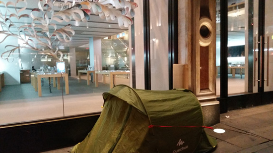 Стоит отметить, что в очередях перед главными магазинами Apple (которые собираются ежегодно в преддверии старта продаж новых моделей) становится все больше людей, которые хотят получить известность (пусть и кратковременную) или те, кто хочет на этом заработать (выгодно продав место в очереди), а также люди, которые рекламируют продукцию той или иной компании. Однако британец, разбивший палатку у Apple Store, не собирается продвигать какой-либо сервис или издание. Он просто хочет первым получить новенький iPhone 6.