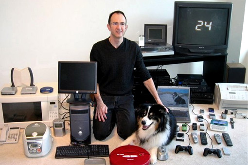 Американский технофил Уэйд Раш (Wade Roush) тоже испытывал смутное чувство, что вокруг становится меньше вещей. Он решил проверить это чувство — и устроил перепись всей электроники в квартире, благо что в 2005 году он уже проводил такую перепись и даже сфотографировался в окружении всех своих гаджетов.