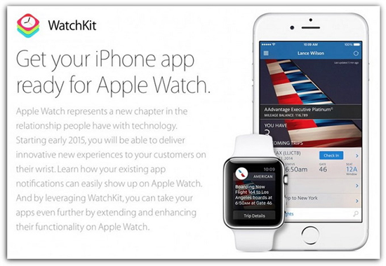 На прошлой неделе Apple предоставила разработчикам SDK WatchKit, с помощью которого уже существующие приложения для iOS можно легко адаптировать под Apple Watch. Ведь необходимо лишь немного расширить их функциональность, чтобы обеспечить поддержку смарт-часов, связанных со смартфоном по Bluetooth, в то время как основная обработка данных производится на iPhone.
