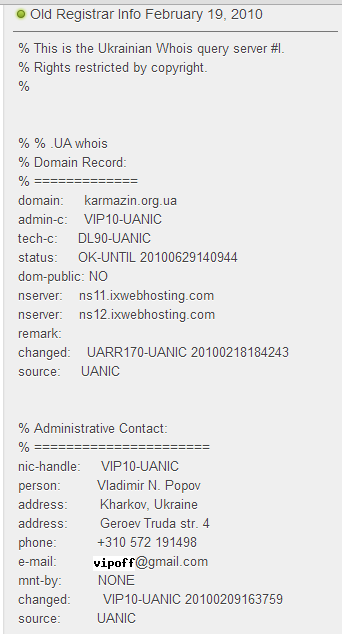 Ранее домен был зарегистрирован на жителя Харькова Владимира Попова.
