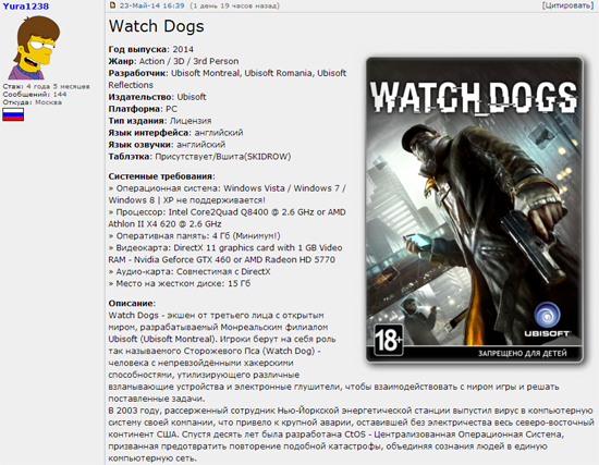Официальный мировой релиз экшена Watch Dogs от французского издателя Ubisoft намечен на 27 мая, однако за несколько дней до него копии игры для различных платформ просочились на торренты.