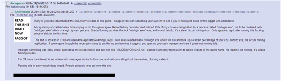 Необычным является тот факт, что злоумышленники используют для майнинга центральный процессор, а не видеокарту, более подходящую для этих целей. На момент написания заметки проблемная версия игры является одной из самых популярных на торрент-трекерах.