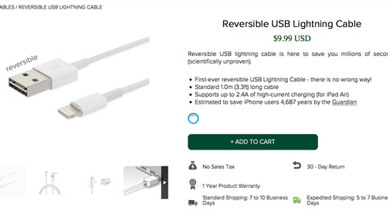 В продаже появился «первый в мире» Lightning-кабель с двухсторонним USB-штекером