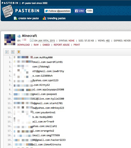 В сети опубликована база из 1800 действительных логинов и паролей пользователей популярной игры Minecraft. Об этом сообщает немецкое издание Heise.