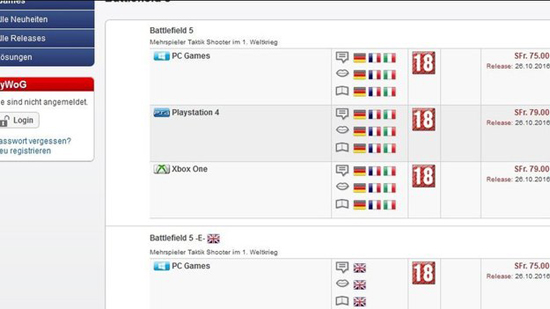В магазине также указали и точную дату выхода новой игры — 26 октября 2016 года. Представители Electronic Arts официально обещали выпустить новую часть шутера в новом финансовом году, что совпадает с датой, указанной в шведском магазине. При этом осенний релиз Battlefield 5 выглядит правдоподобно, поскольку большинство блокбастеров выходит в октябре-ноябре. Как бы то ни было, 26 октября приходится на среду, в то время как крупные компании обычно выпускают свои игры по вторникам и четвергам.