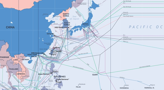 Всемирная карта подводных коммуникаций, соединяющих континенты при помощи Всемирной Паутины, появилась в широком доступе.