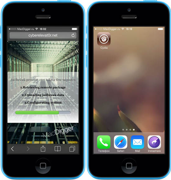 Каким образом предлагается сделать джейлбрейк для iOS 7.1/7.1.1? Желающим нужно открыть на iPhone и iPad сайт http://cyberelevat0r.net, провести пальцем по слайду Slide to unlock и несколько раз нажать в окне «ОК». После этого, как утверждается, на экране iOS-устройства появится иконка Cydia и устройство будет джейлбрейкнуто. Подобным образом работал сервис JailbreakMe.com – он взламывал гаджеты на iOS 4.
