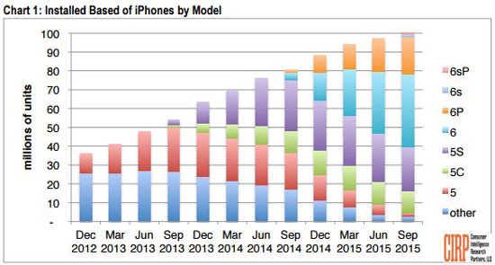 Но самое удивительное в том, что большая часть из них пользуется iPhone 6 или более новыми моделями. Как отмечает THG, к концу сентябрьского квартала жители США использовали 58 млн iPhone 6 и iPhone 6 Plus, а в последний уикенд квартала к их числу присоединилось еще 4 млн владельцев iPhone 6s и 6s Plus. Отмечается, что за первый год Apple продала около 60 млн смартфонов семейства iPhone 6 по сравнению с 28 млн iPhone 5s, проданными в его дебютный год.