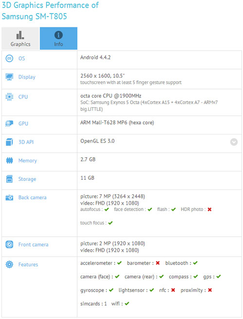 В бенчмарке GFXBench был замечен новый Android-планшет Samsung SM-T805.