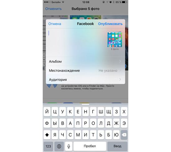 Моменты в терминологии Apple – это ряд снимков, сделанных примерно в одно и то же время и в одном и том же месте. Их можно найти в Фото, а еще ими можно всеми сразу и поделиться в Facebook, закачивая в альбом в социальной сети не по одной или две фотографии, а сразу все 20 штук. Просто нажмите на Share в правой части экрана — и выбирайте, куда кидать.